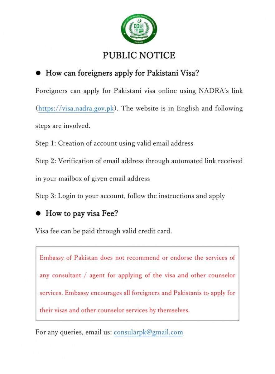 PLEASE NOTE: As per the instructions of Government of Pakistan, from 1st January, 2021 ALL VISA APPLICATIONS are to be submitted via Pakistan Online Visa System. All visa applications are therefore advised to please submit visa application through online visa portal.