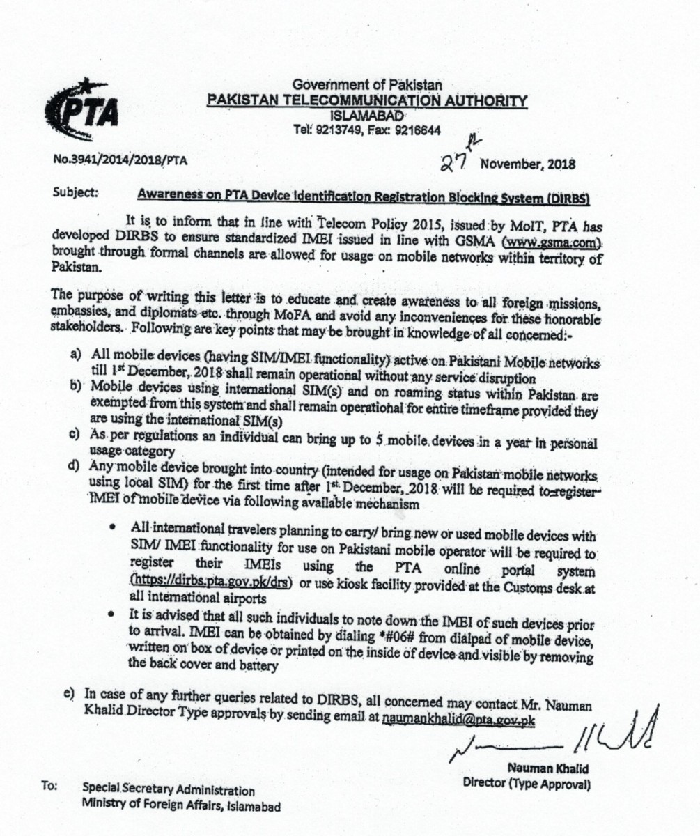 AWAEWNESS ON PTA DEVICE IDENTIFICATION REGISTRATION BLOCKING SYSTEM (DIRBST)