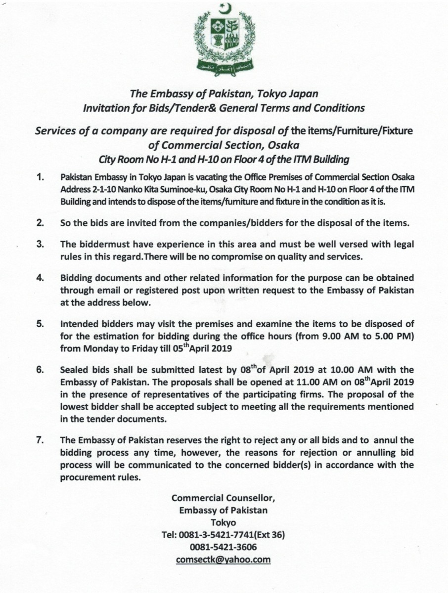 INVITATION FOR BIDS/TENDER AND GENERAL TERMS AND CONDITIONS