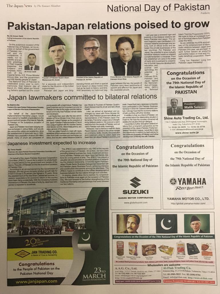 23rd March 2019, Pakistan Day SPECIAL SUPPLEMENT (JAPAN NEWS)