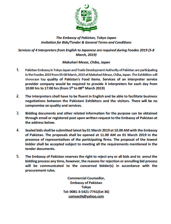 INVITATJION FOR BIDS/TENDER & GENERAL TERMS AND CONDITIONS