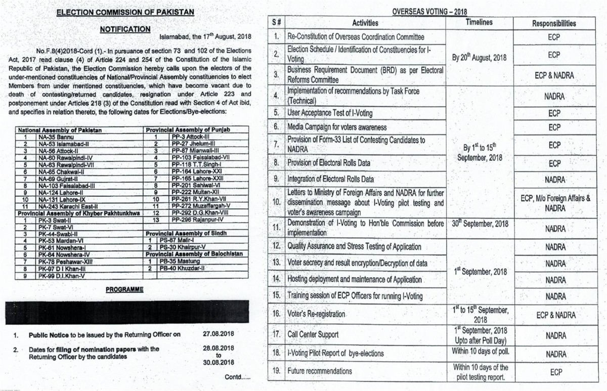 ELECTIONS/BYE ELECTIONS SCHEDULE ISSUED BY ELECTION COMMISSION OF PAKISTAN ...