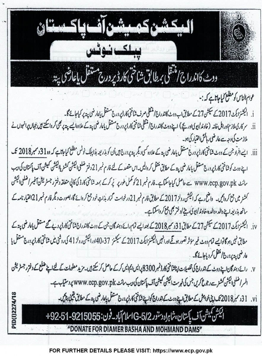 PUBLIC ANNOUNCEMENT FORM ELECTION COMMISSION OF PAKISTAN